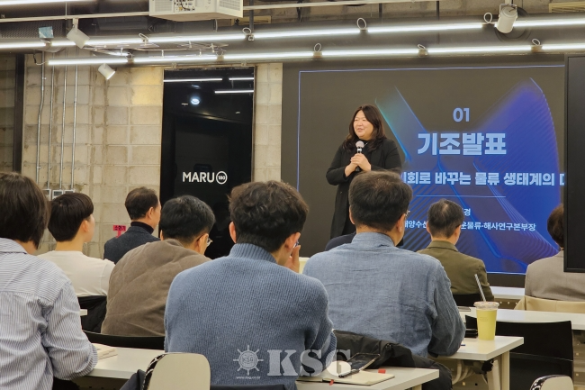 ▲한국해양수산개발원 이언경 본부장이 기조발표를 진행하고 있다. |