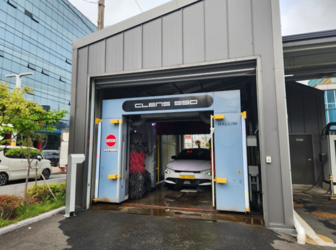 피트인의 전기차 전용 세차 기계 (사진=김지윤 기자)